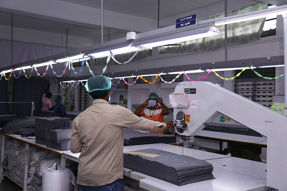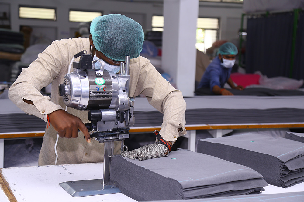 The first stage in the manufacturing of garments is the cutting and it it done with imported machinery. We have One Band Knife Cutting Machine and Two Straight Knife Cutting Machines with the cutting capacity of 50,000 Pcs per day.