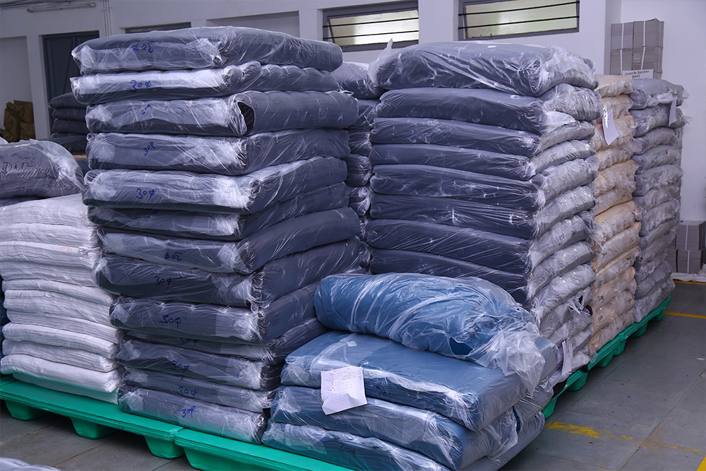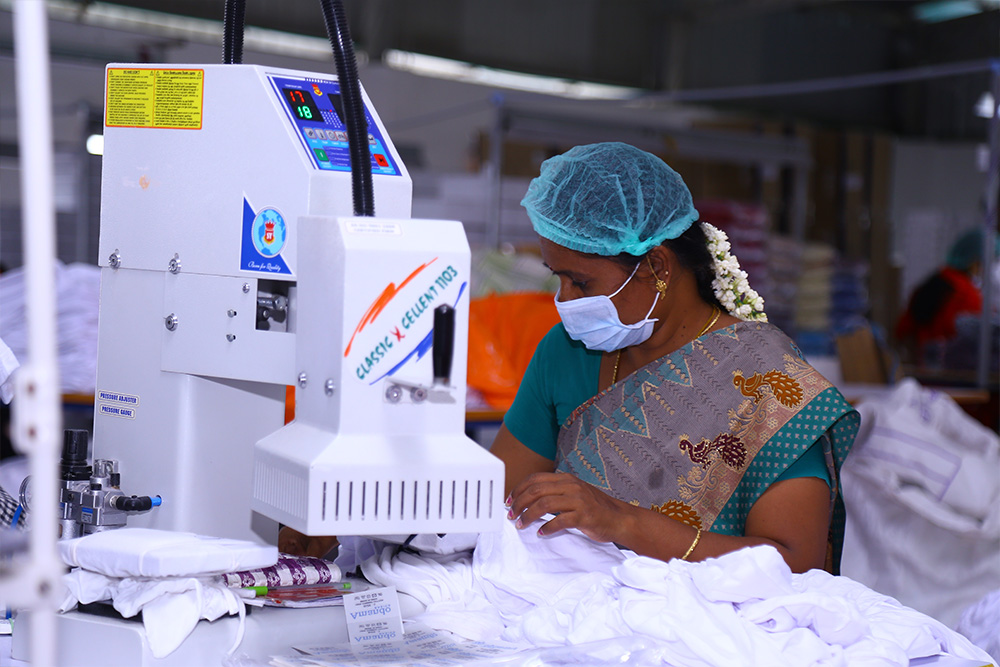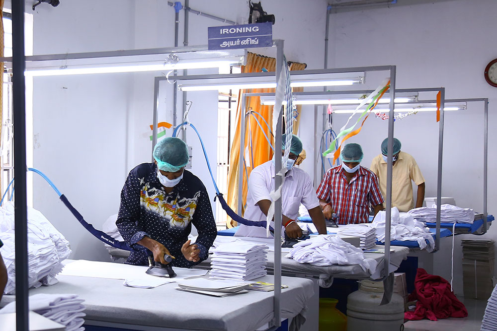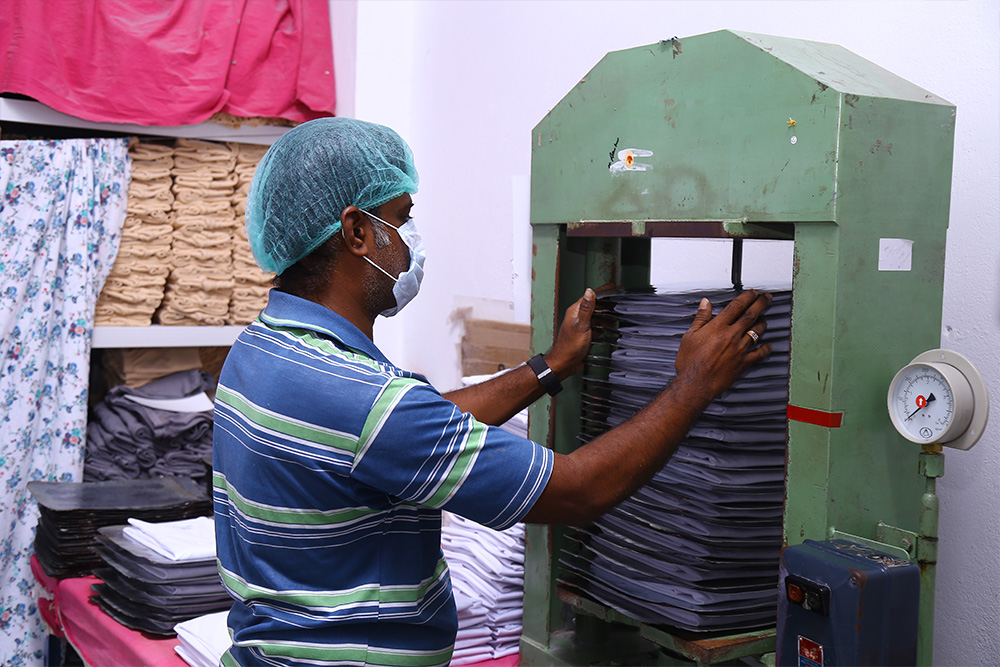 Our Ironing section comprises of 5 Ironing Tables powered with Vacuum and Steam, these machines have the production capacity of 10,000 Pcs/Day. As an effort to conserve water usage, we have installed Rain Water Harvesting Pit and the Steam Produced for Ironing Division is from purely filtered Rain Water.