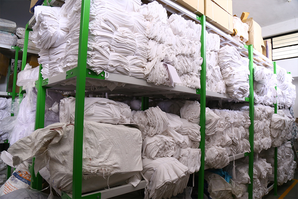 Our Storage Warehouse comprises of 10,000 Sq.ft. and 15 Labours who manage the Packed Goods, Fabircs and other Accessories required for Garment Production.